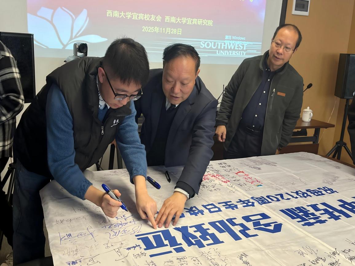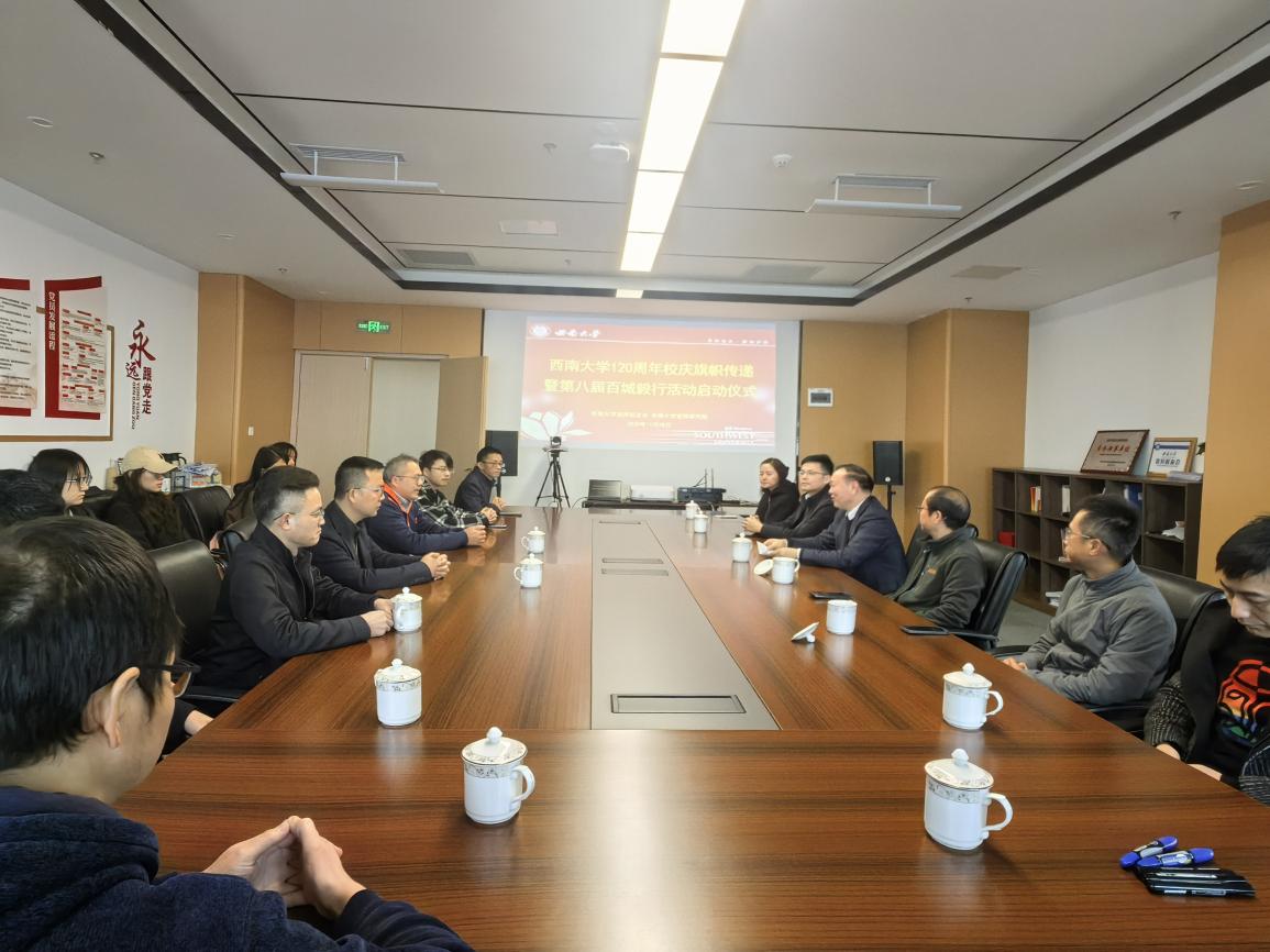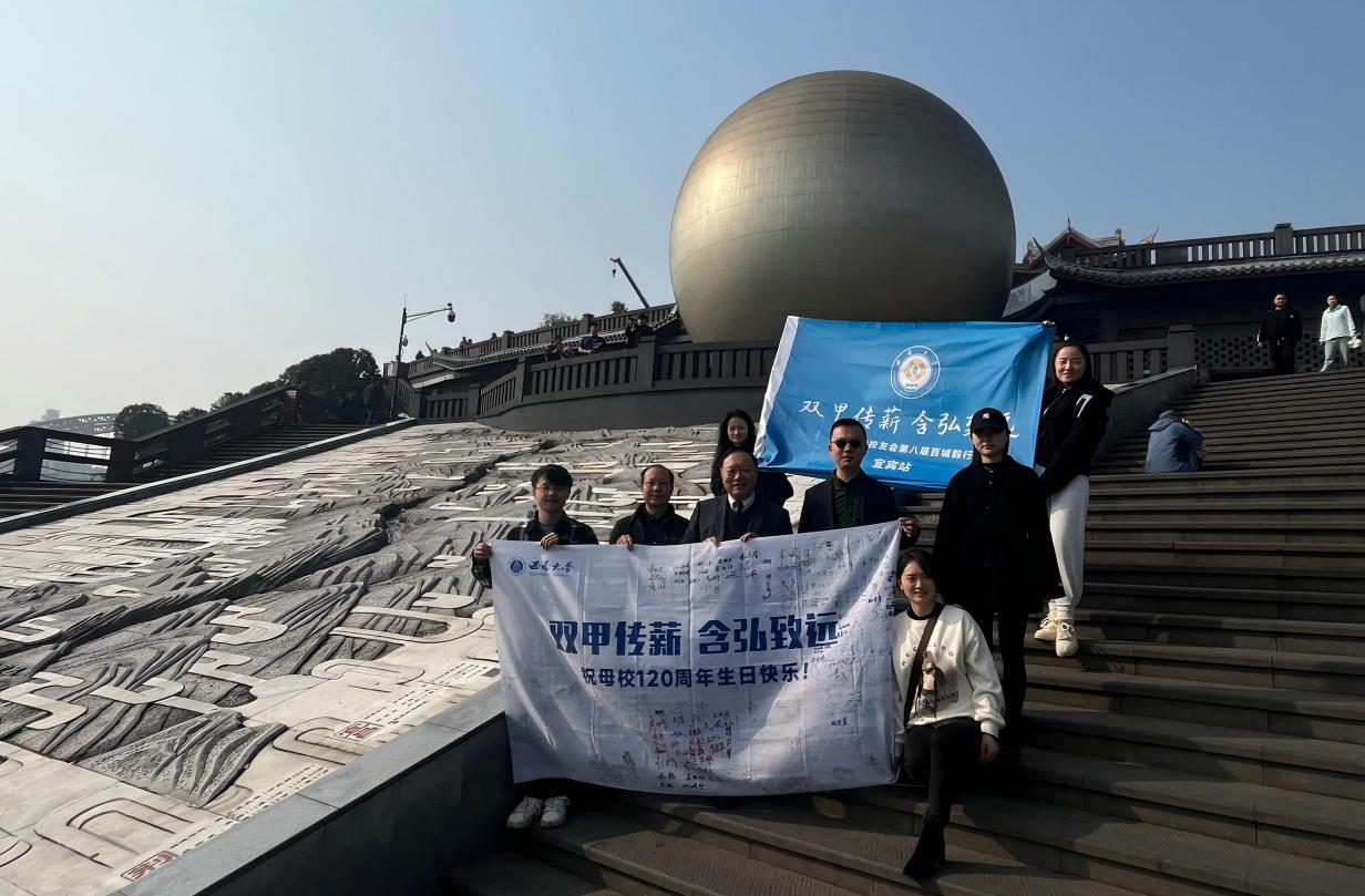 为迎接母校120周年校庆,西南大学宜宾校友会于2025年11月28日成功举办“迎120周年校庆·百城毅行传旗”活动,宜宾校友会及宜宾研究院师生代表30余人齐聚宜宾,以校旗传递、徒步毅行的方式,向母校120周年华诞送上诚挚祝福。