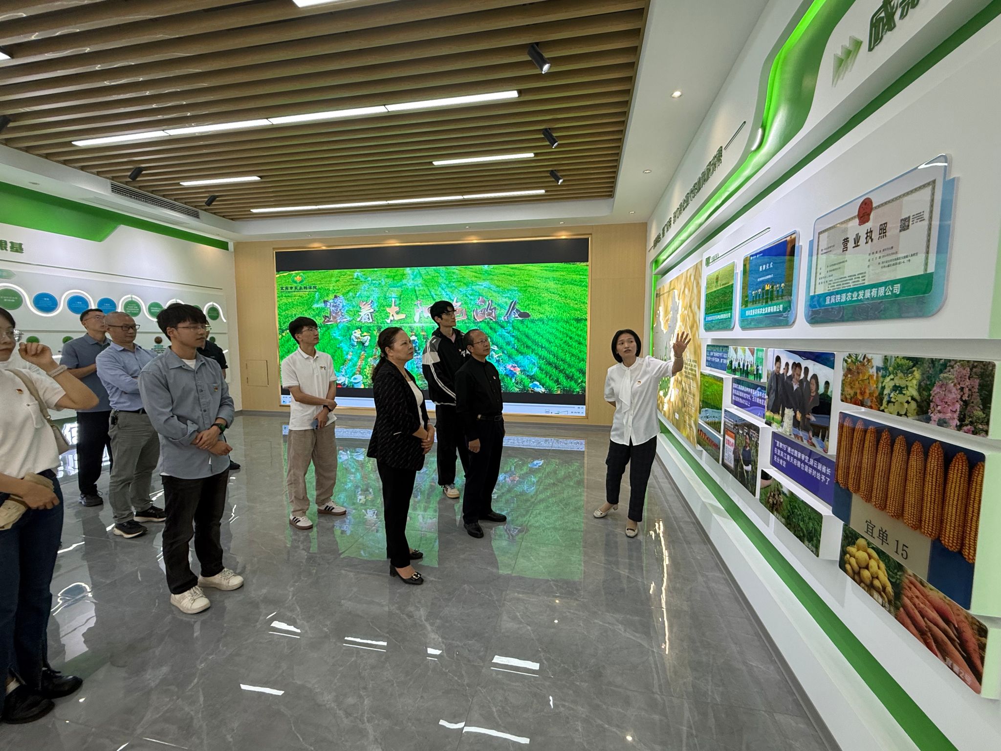 张英、詹映红陪同参观了基地的成果展示厅及试验示范基地,介绍了近年来市农科院引领大观镇积极探索农业科技融合发展新模式,打造了“农科院所+区属国企+村联合社+村集体公司”发展共融体,为当地农业科技推广和乡村振兴提供了有力支撑。详细介绍了基地在粮油作物种苗研发、优质果蔬种植以及农业高新技术研发等方面取得的成果。参观了基地粮油作物种植展示区、优质果蔬种植展示区、农业高新技术研发展示区和农业科普体验观光展示区。